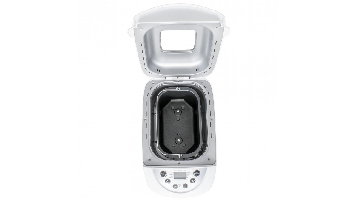 Funcţii: selectare dimensiune pâine: 1000-1250-1500g, menţinere la cald 60 min, programare pornire pâna la 15 ore.