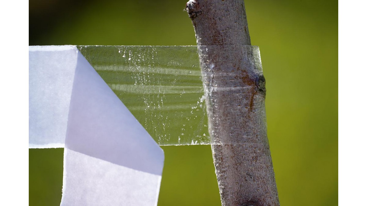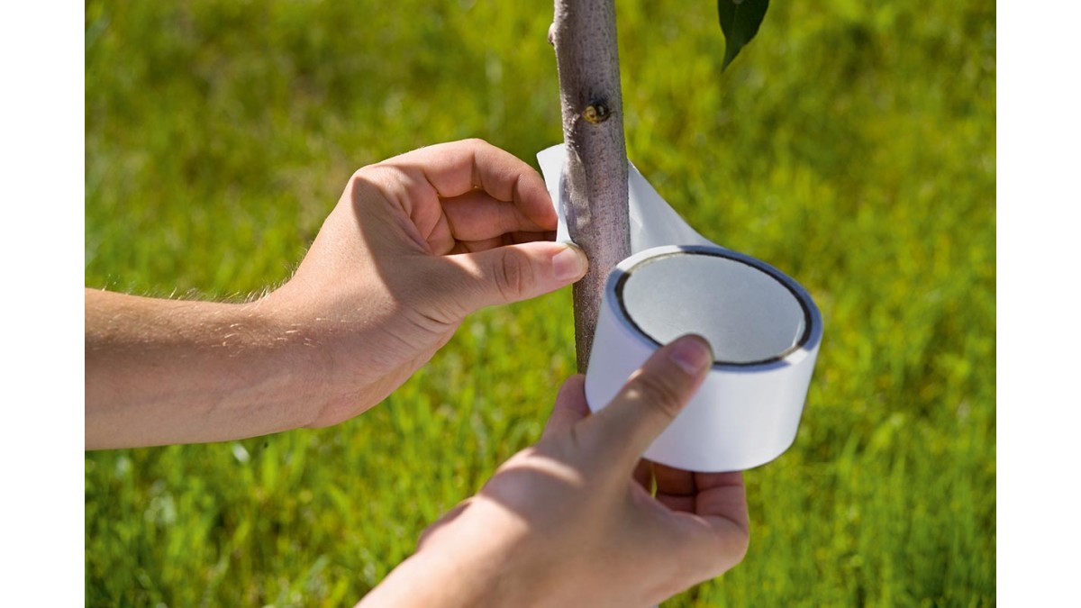 Desfasurati rola si infasurati de jur imprejurul tulpinii pomilor fructiferi si vitei de vie.