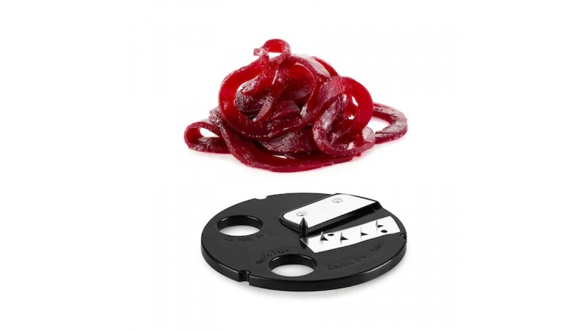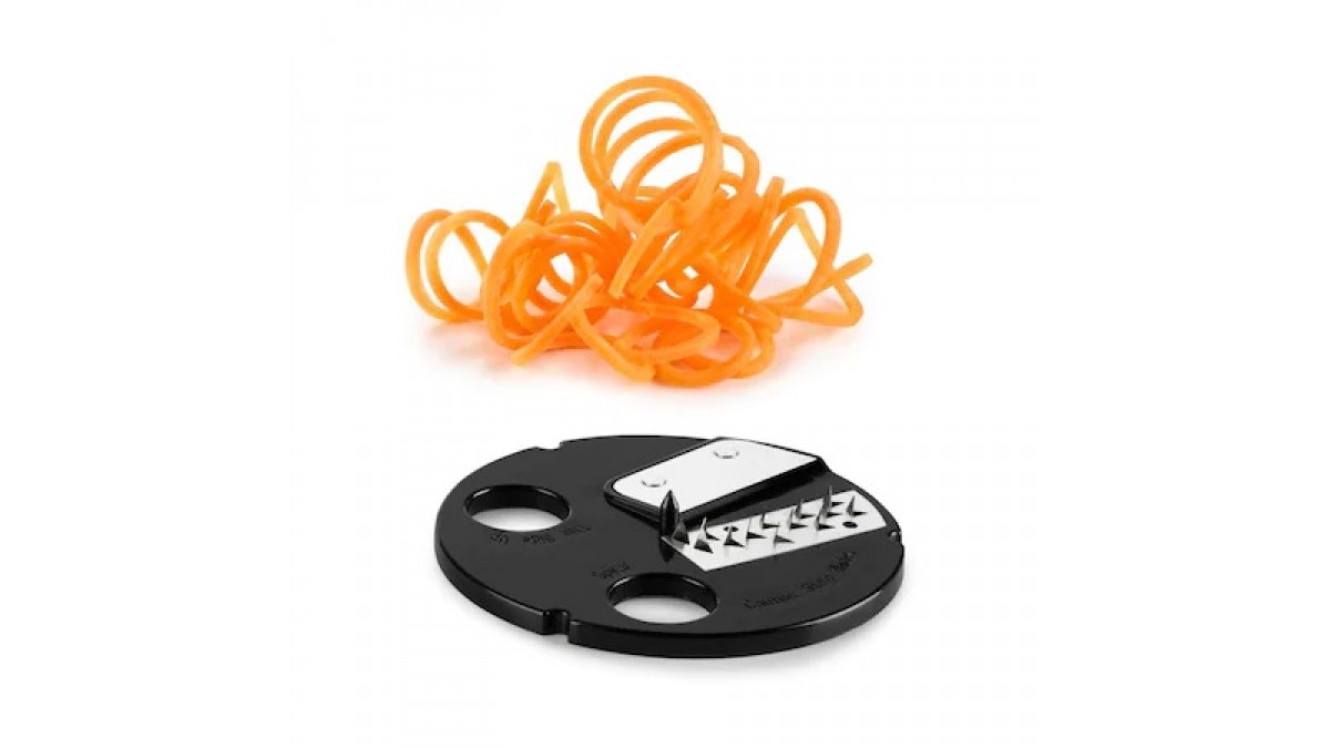 Include 3 lame din inox pentru taietei subtiri, taietei grosi si felii spiralate.