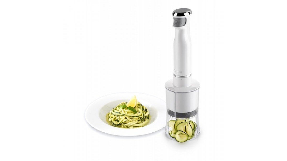 Poate fi folosit ca feliator spiralat sau blender de mana.