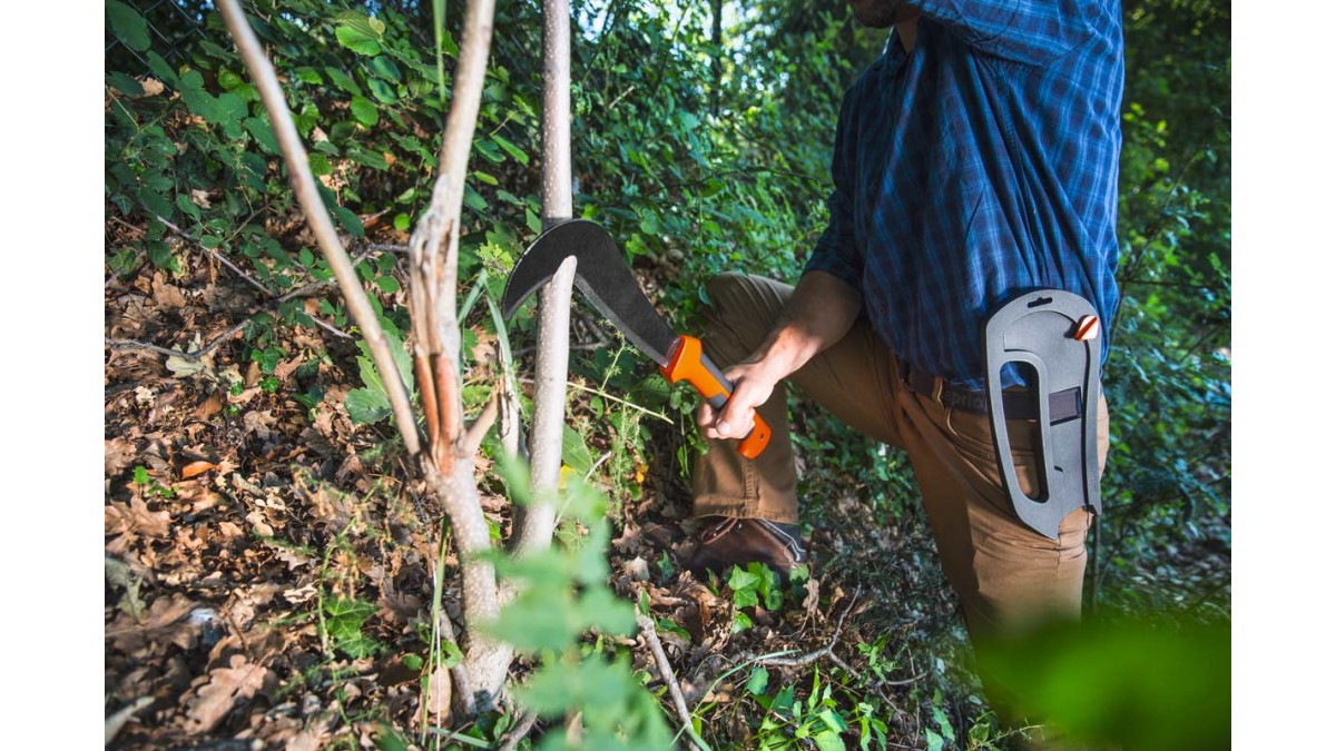 Maceta vine însoțită de o husă și un instrument de ascuțit integrat, pentru a face posibilă ascuțirea lamei în timpul lucrului, și cu o agățătoare pentru depozitarea în siguranță a uneltei.