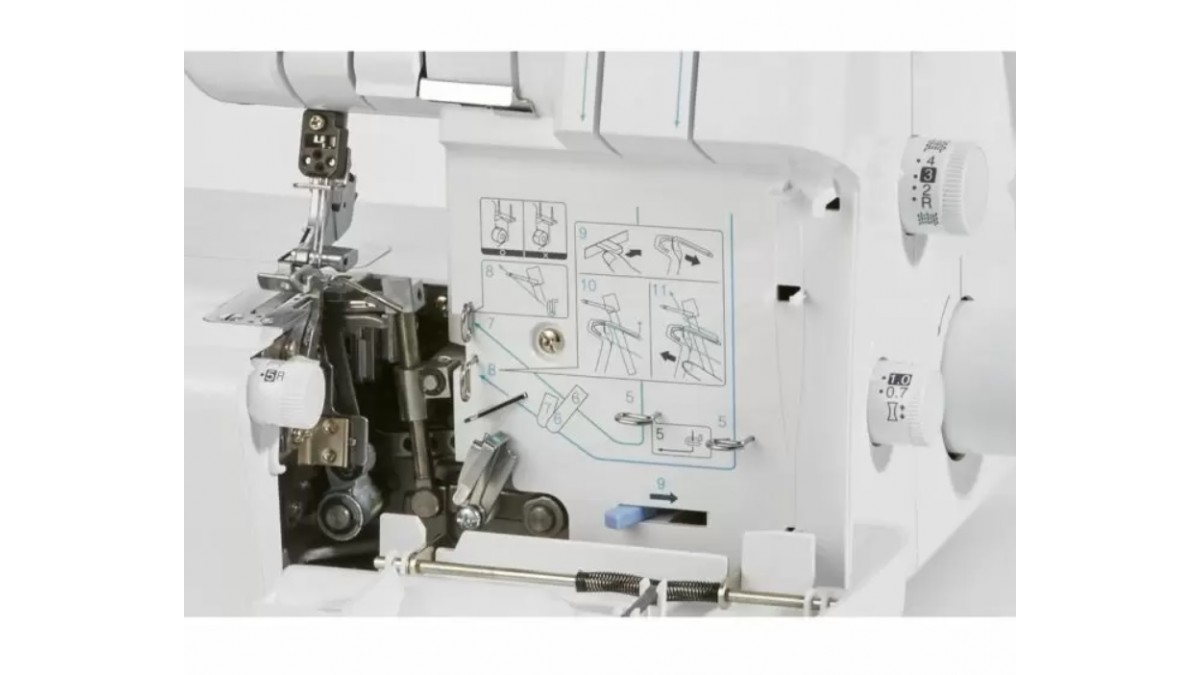 - accesorii incluse in pret: capac moale, sac accesorii, pensete, plasa pentru ata, capac mosor, perie curatare, surubelnita hexagonala, set ace, pedala, DVD cu instructiuni.