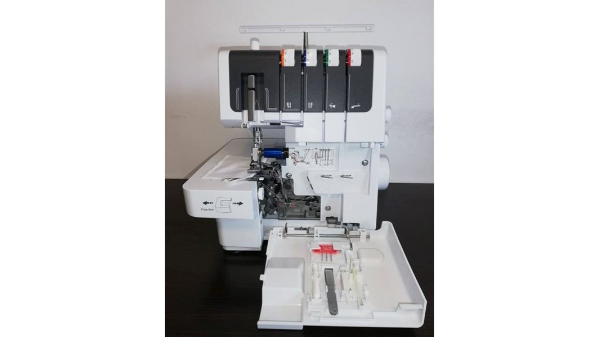 - accesorii incluse in pret: surubelnita (mare), cutit imobil, capac anti-desfasurare pentru bobina, plasa pentru bobina, pompa de ulei, surubelnita (mica), penseta, set de ace, perie pentru curatare, suport bobina, colector de scame, husa masina.