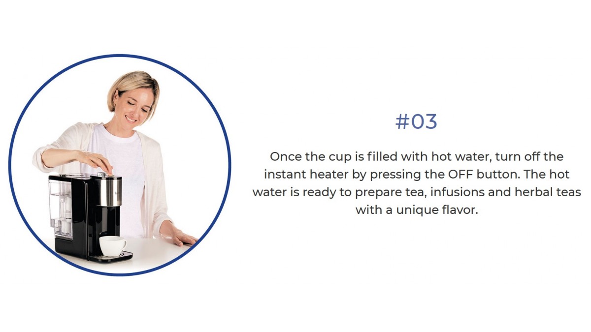 Laica Volcano filtrează apa și apoi o încălzește la o temperatură între 0-100oC. Este ideal acasă și la birou. Prepararea băuturilor calde cu apă sigură nu durează mai mult de câteva clipe.