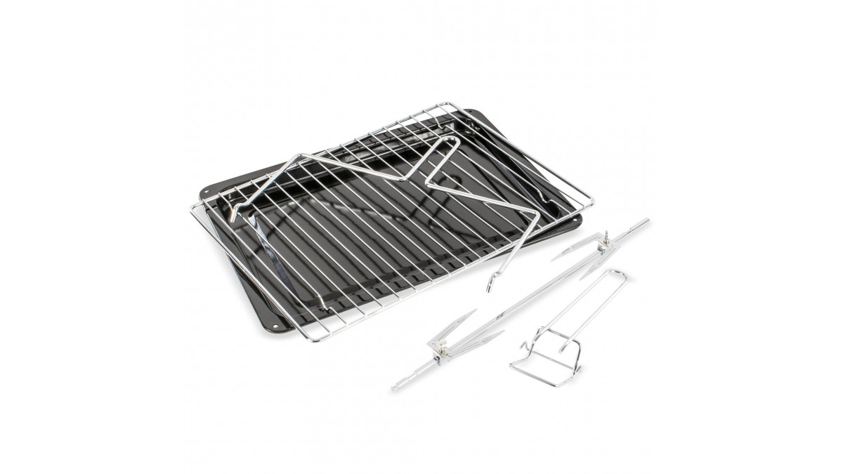 Accesorii: rotisor cu maner, gratar cromat si tava de copt.