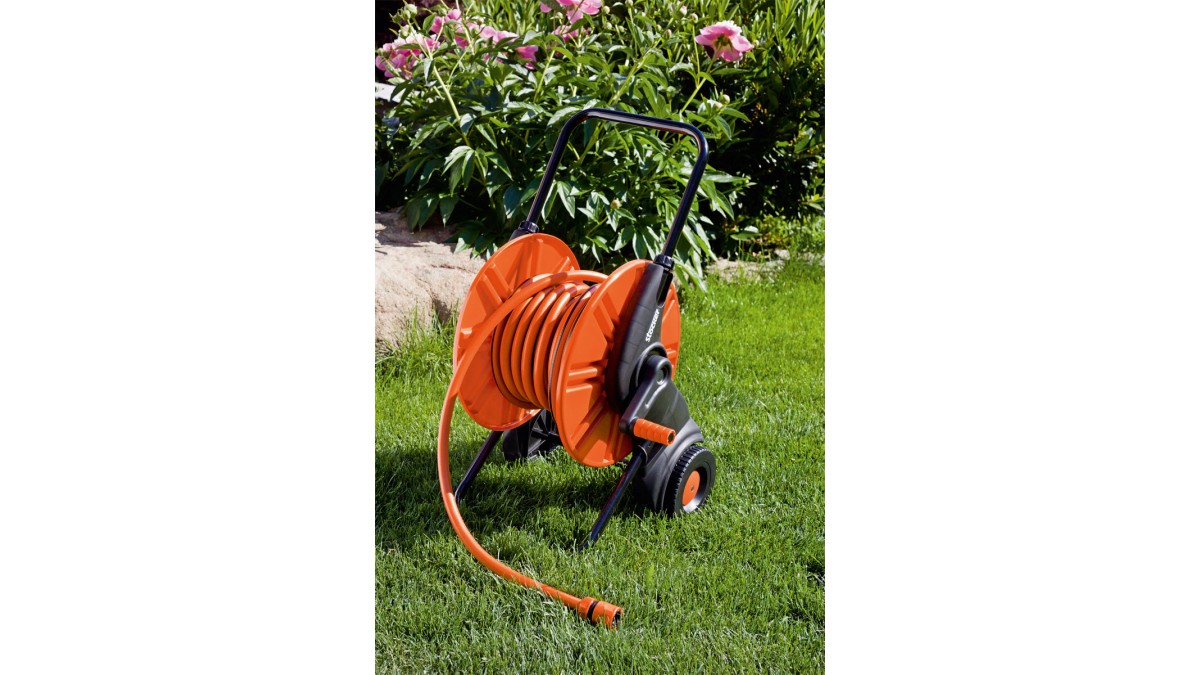 Carucior-tambur pentru furtun de gradina, ce poate rula pana la 45 m de furtun de ½" (12,5 mm).